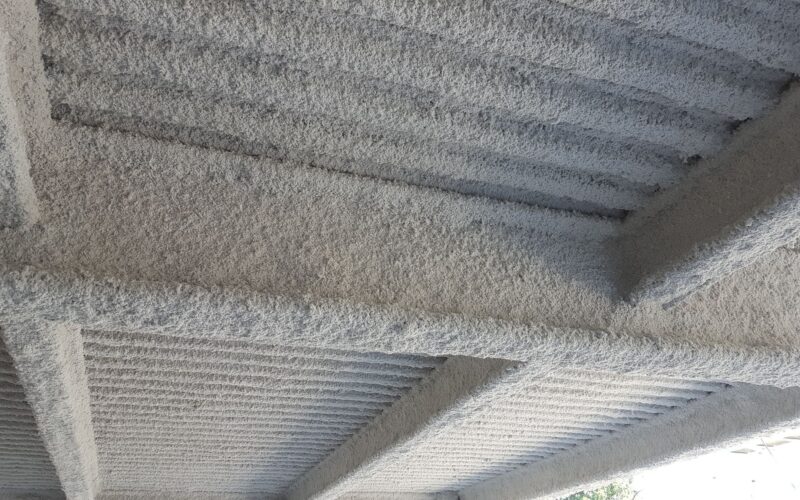 El mortero de proyección pasiva se aplica mediante proyección mecánica, es un producto aligerado de alto rendimiento, fácil aplicación para uso en interiores, protección frente a estructura metálica, forjados mixtos de hormigón, chapa colaborante y franjas cortafuegos, ensayado bajo Norma Europea Armonizada según estabece el DB SI., con marcado CE via DITE., clasificado como Euroclase A1 (no contribución al fuego). No contiene fibras, no es nocivo para la salud.